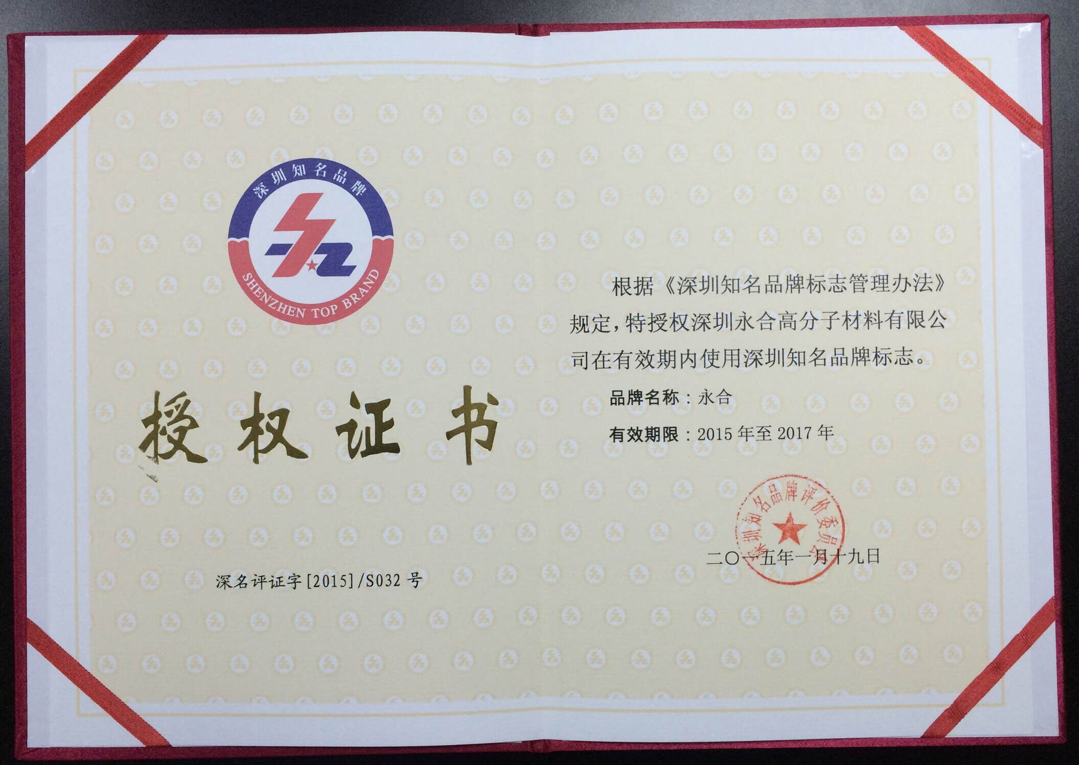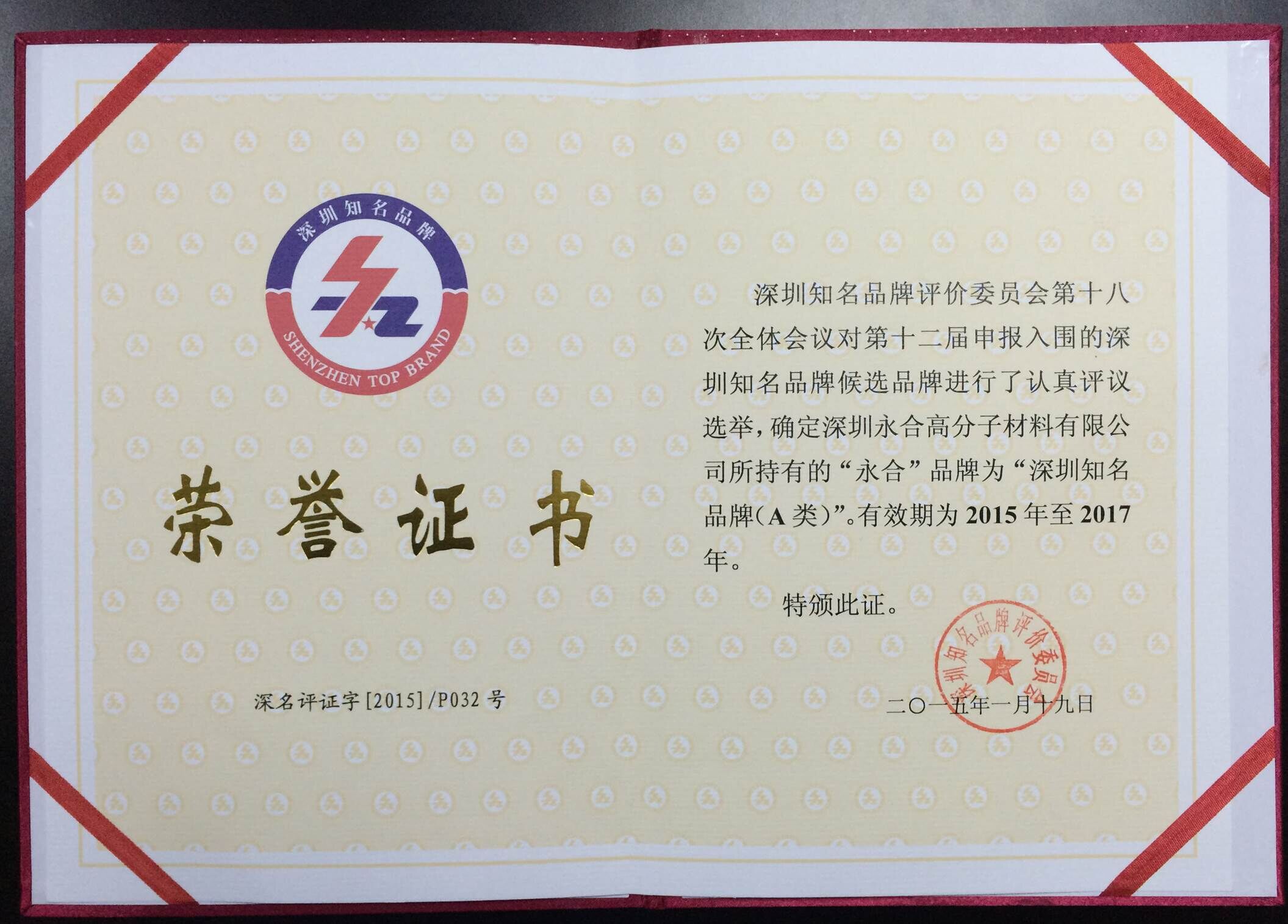 经过深圳知名品牌评价委员会第十八次全体会议的认真评议选举,在众多优秀品牌竞选中,永合公司荣获为“深圳知名品牌(A类)”。