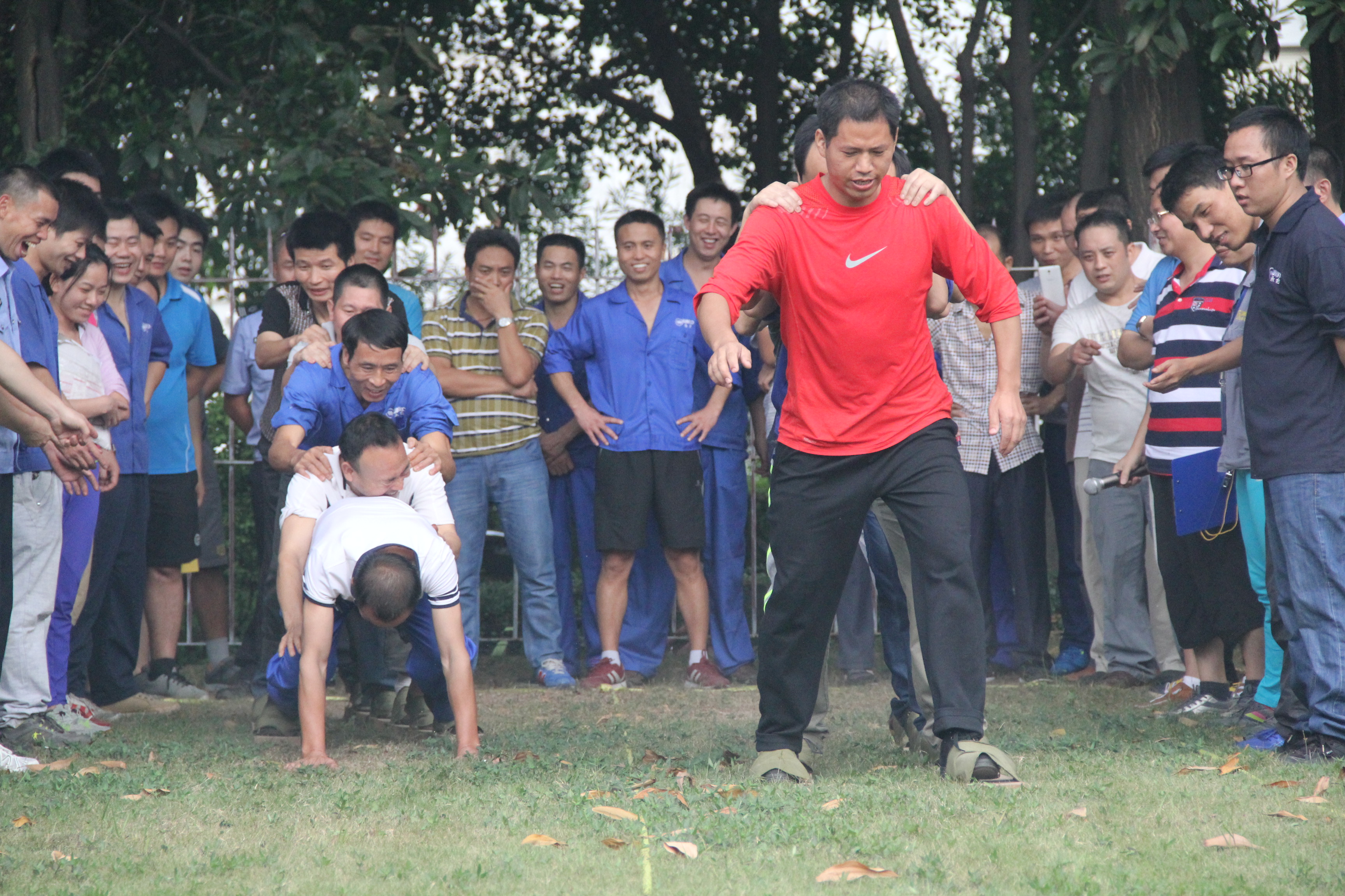 集体项目有拔河、接力赛、脚板跑、跳大绳、袋鼠跳、趣味接力 ,员工们踊跃报名,积极参与。赛场上,队员们齐心协力、团结合作、奋力拼搏,赛场下,观众们也被比赛的激烈所带动,呐喊助威声不断。在趣味接力中,8支队伍进行激烈角逐,经过走平衡木、原地转圈、投球等趣味运动后,最后分别由仓储部、办公联一队、办公联二队荣获冠亚季军。其中,办公联一队以一秒只差险胜办公联二队,整个场面好不热闹。